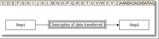 The next step is to align the text box over the flow chart connector. This can be done by selecting the text box and using the keyboard arrow keys to move the shape. If Snap to Grid is enabled, fine-tuned movements can be made by holding the Ctrl key down while pressing the arrow keys. The picture below shows the above text box moved on top of the flow chart connector.