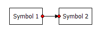 If one or both of the flow line end points has a green dot when selected (shown below), then it is not connected to the shape. If Symbol 2 were moved, the flow line will not be moved with it. To re-connect a flow line like this, click on the green dot with your mouse and drag it to a connection point on the shape.